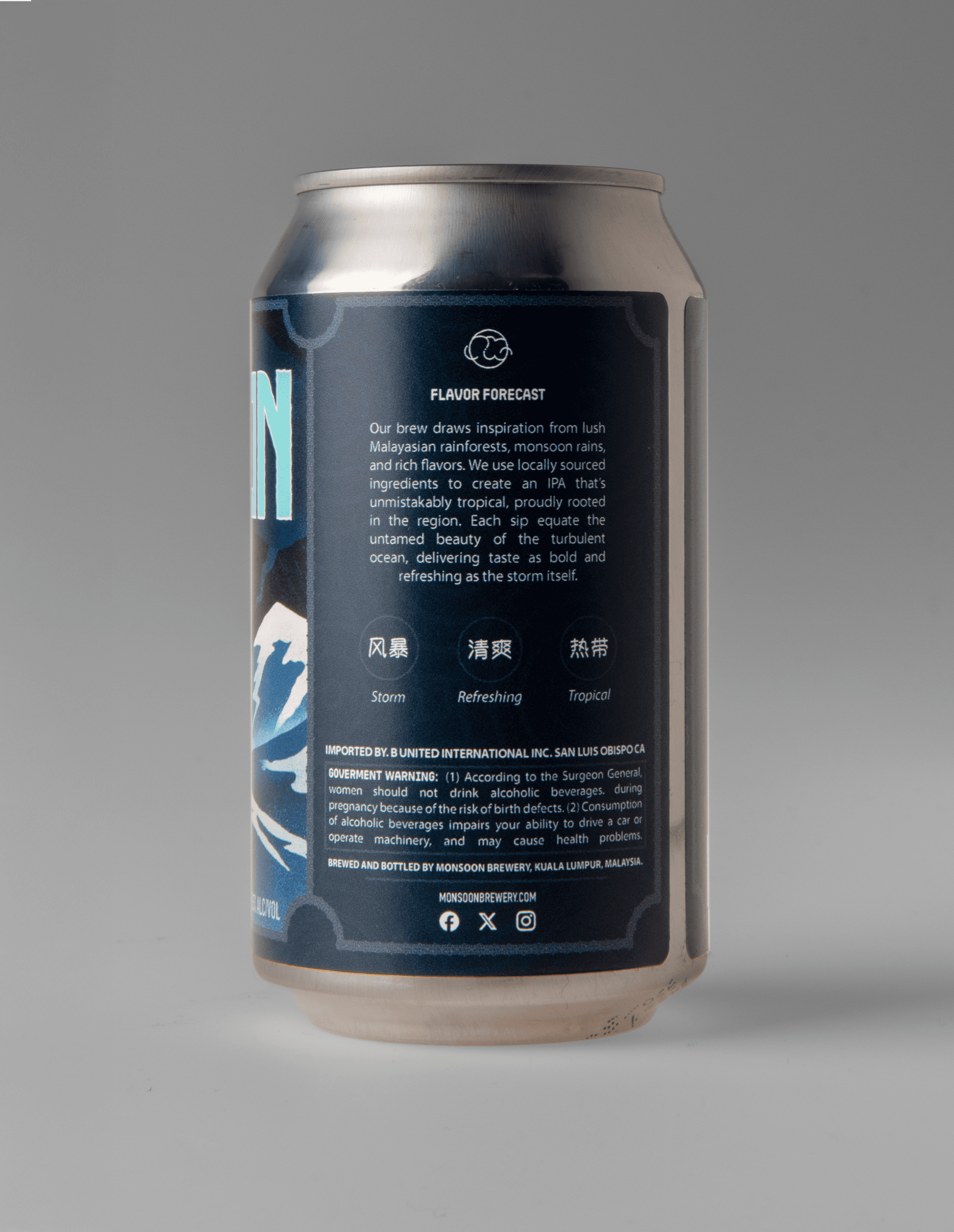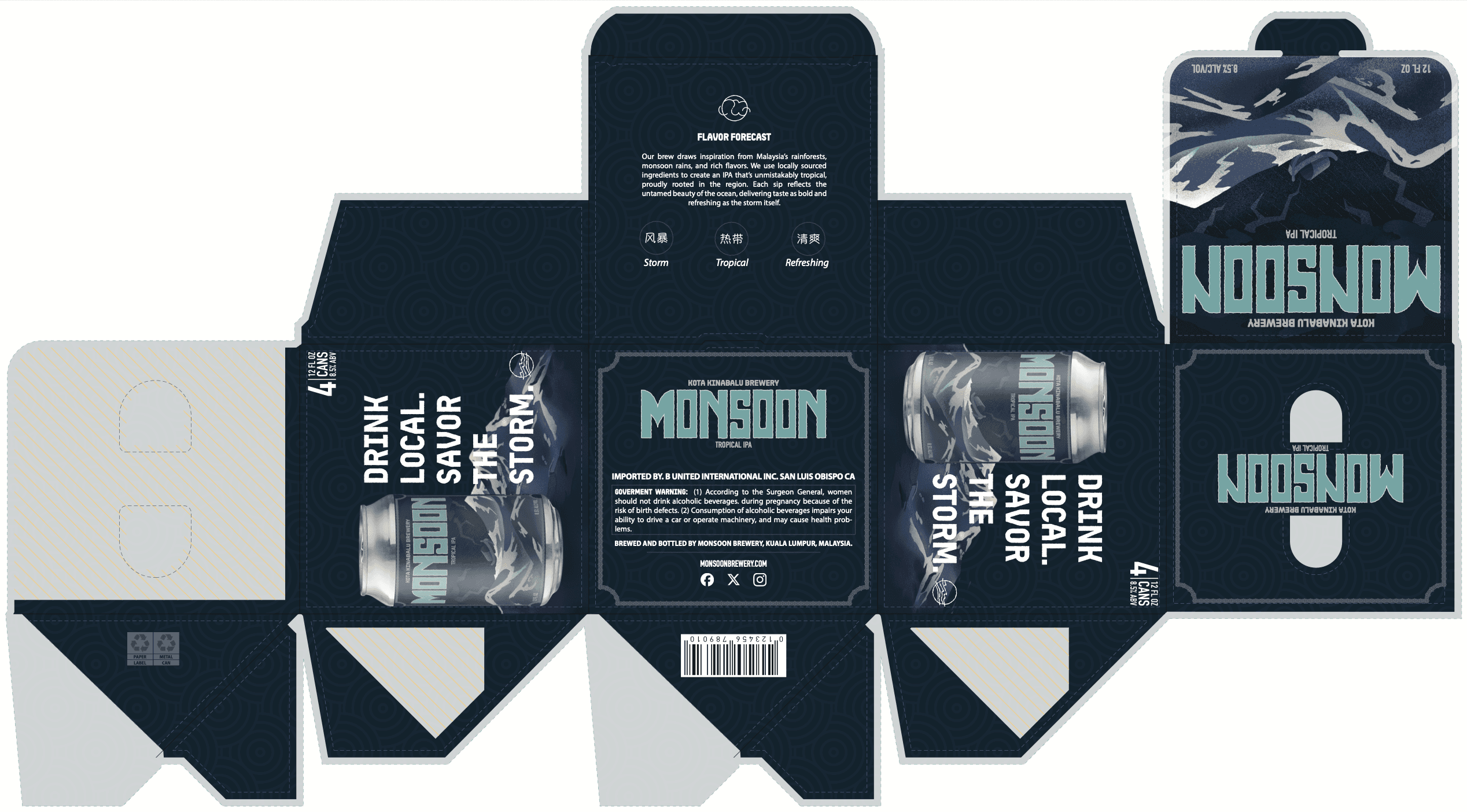 Monsoon is a craft IPA concept inspired by my Malaysian heritage. designing the label and packaging, focusing on typography, layout, illustration, and brand identity to create a product that blends cultural motifs with new modern take.